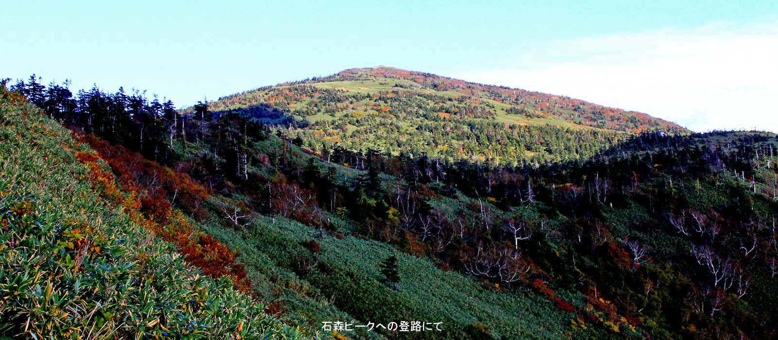 チングルマの紅葉と山頂(石森の雪田凹地) |