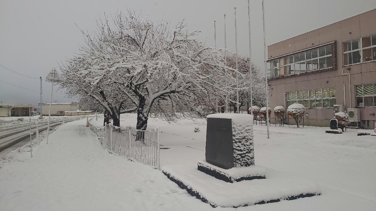 昨日ずっと雪が降り続け、一夜明けた今日。ご覧の通り雪景色に。2週間前にこのブログで「紅葉し、落葉が始まりました」という記事を紹介しましたが、一気に秋が終わってしまったかのようです。