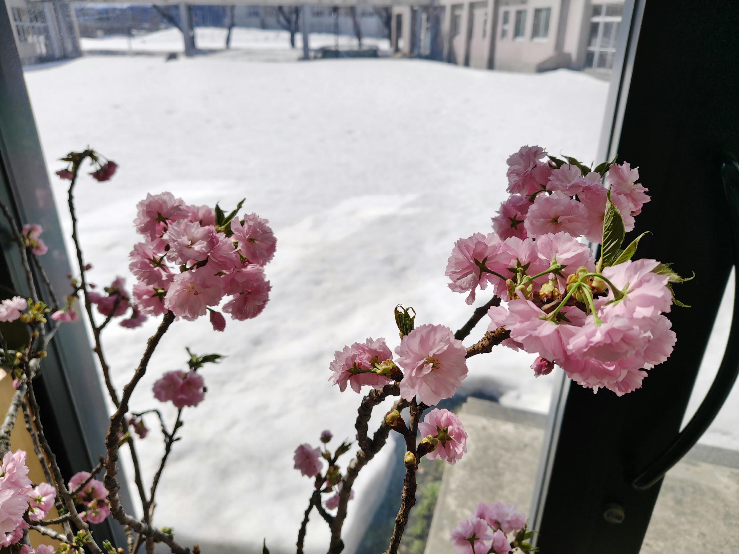 全員受検を終えました。そして、明後日は卒業式。当日会場を飾る予定の八重桜も、その日に合わせて見事に咲いてくれました。3年生とのお別れも近づいてきました…