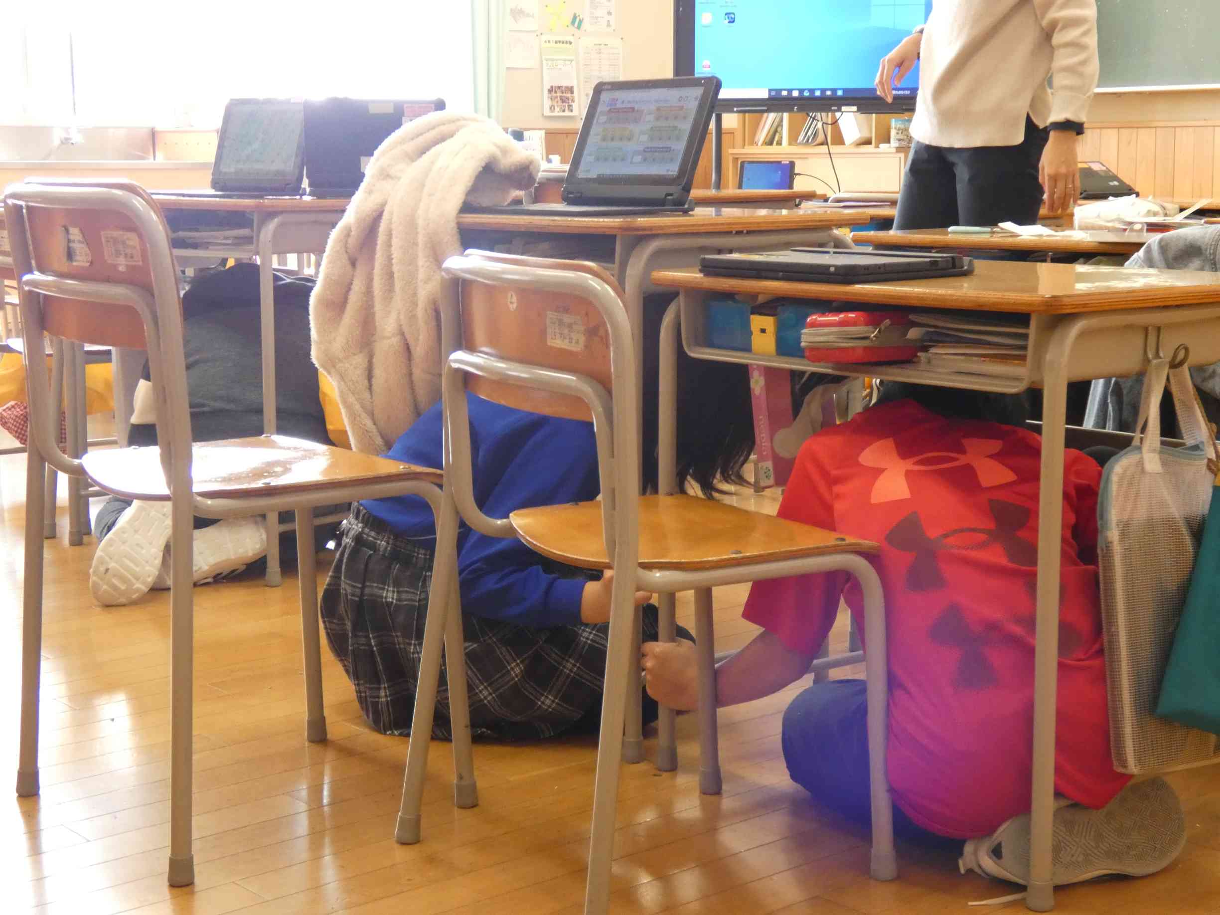 今日は全国地震訓練がありました。合川小学校も「休み時間に地震が起きたときの行動を学ぶ」をねらいとして、短時間で取り組む避難訓練を行いました。地震速報を聞き、まずは自分の頭を守る、揺れが落ち着いたら、どの非常口から避難するか確かめる、という流れで行いました。休み時間でも災害は起こる可能性があり、考えて行動することが大事ということを再確認しました。