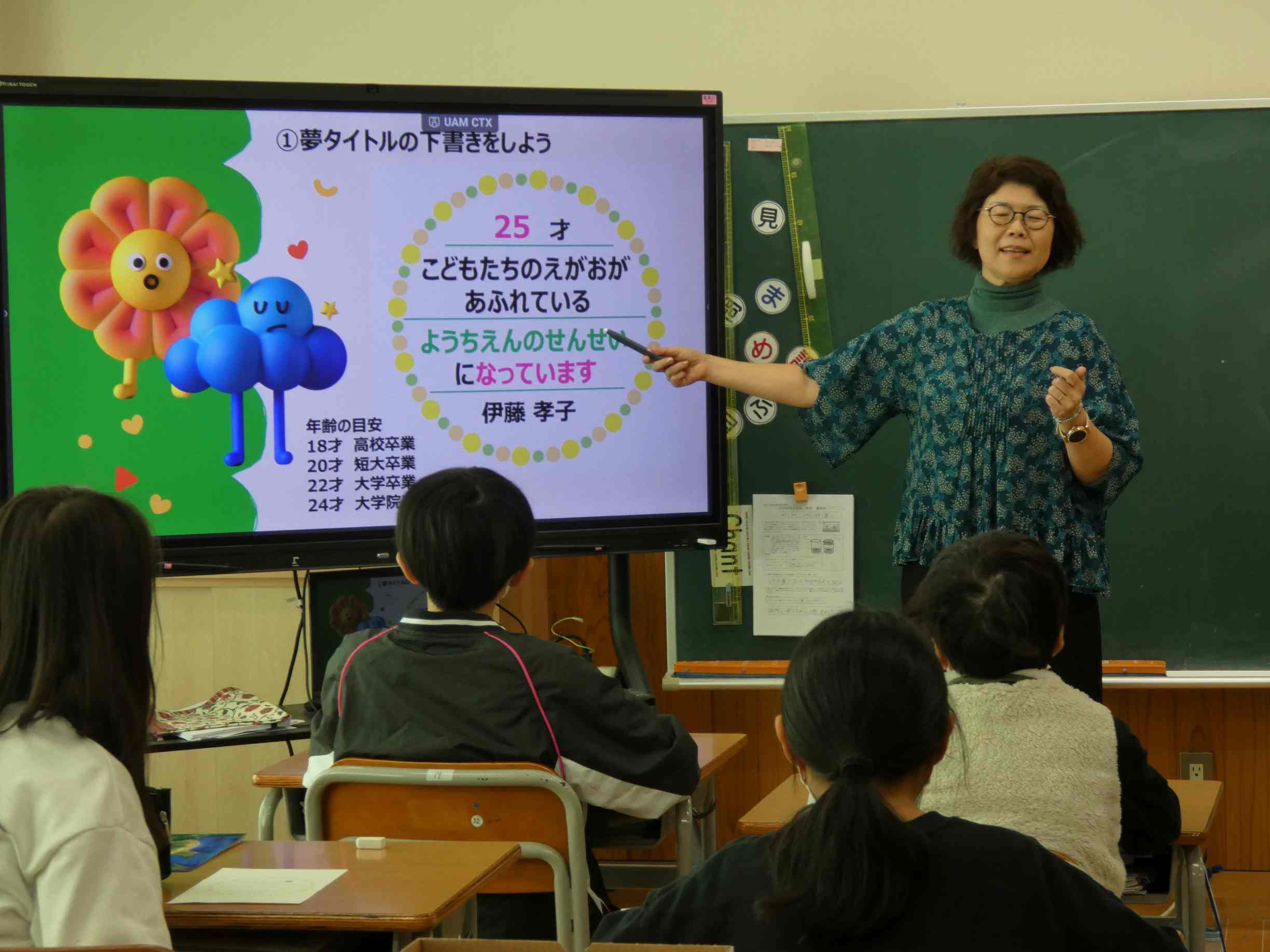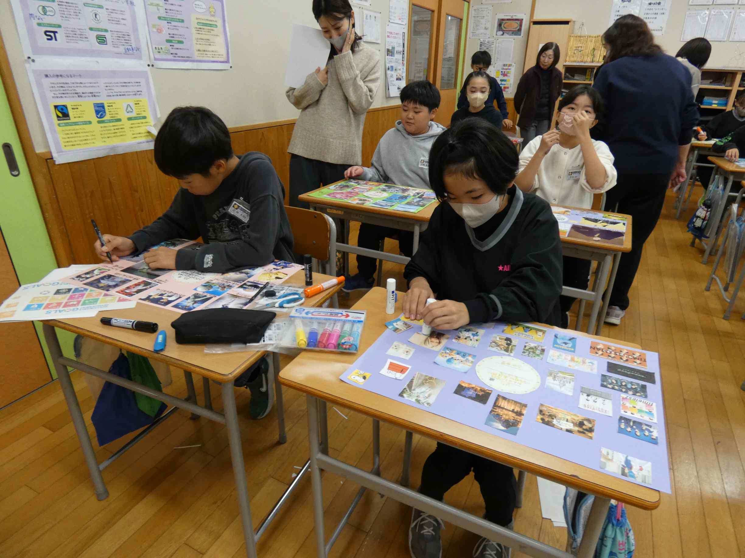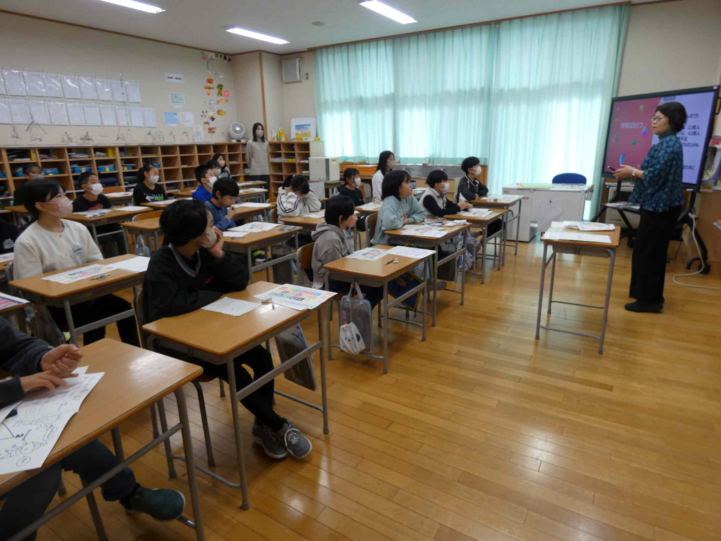 5・6年生がいのちの教育あったかエリア事業のひとつである「未来マップを作ろう」に取り組みました。これは、自分の好きなものやこと、人、将来の夢などを自分が選んだ色画用紙に貼り、そこにメッセージや文章を書き込んでいく活動です。その過程で、ウェルビーイングや自己肯定感の向上についてもふれ、自分や周囲の人を大事にする大切も学びました。どちらの学年も午前いっぱい活動しましたが「時間が足りない、まだやりたい」という声がたくさん聞かれました。指導してくださった「ここはぐ楽園」代表の伊藤孝子先生、ありがとうございました。※学校報には6年生の、こちらには5年生の活動の様子を紹介しています。