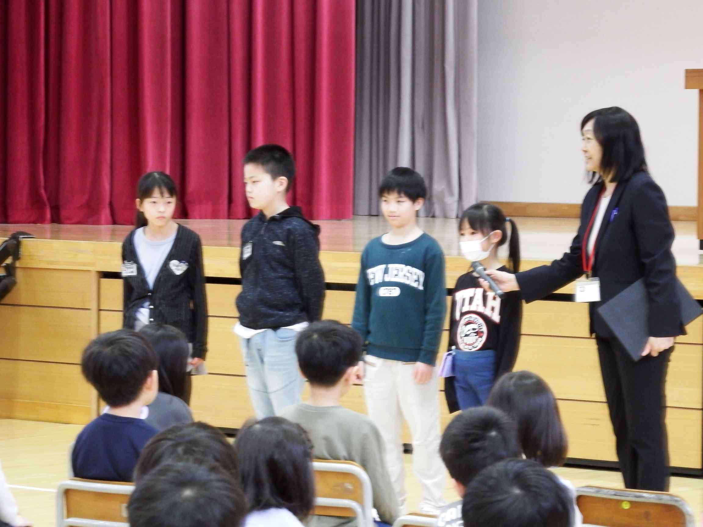 今年度の学校教育目標は「ともに 光りかがやく~自らかかわり みんなでつながり 磨くココロネ~」です。主体性と協働性を発揮しながら自分のよさを伸ばしていけるよう教職員一同、がんばっていきます。始業式では、6年生の代表ががんばりたいことを発表しました。「今年はこれまでの自分ではない。6年生としてリーダーになってがんばっていきます」と自分の思いを発表してくれました。新任式でも6年生代表が歓迎のあいさつをのべ、初日から大活躍の6年生です。また、新しいお友達の紹介もありました。全校児童124名でスタートです。