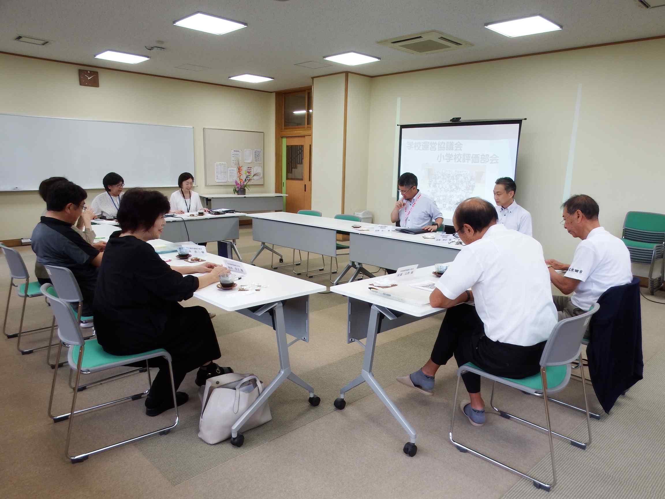 第2回学校運営協議会小学校評価部会が開かれました。はじめに校長から学校経営について説明をし、その後全クラスの授業を参観していただきました。学校の現状を評価していただきながら、よい点、改善点について、親身になって話合いをしてくださいました。「本校の学校運営協議会の方は学校の味方だなあ」といつも思います。今後ともよろしくお願いいたします。