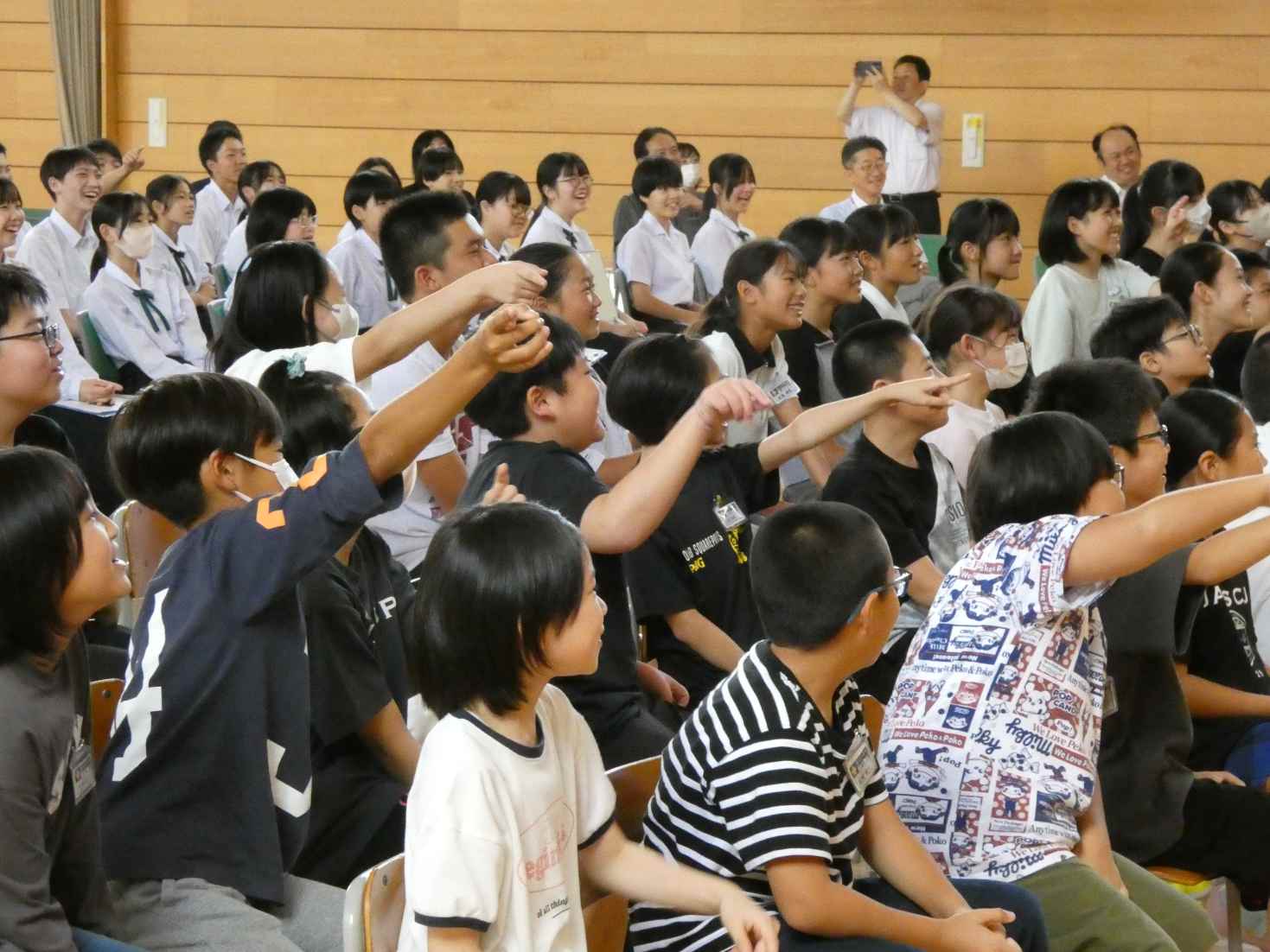 9月26日、お笑いパントマイムユニットのGABEZが本校に来てくれました。「いのちの教育あったかエリア事業」の一環として,小中合同で行いました。パントマイムの面白さにぐいぐい引き込まれ,笑いあり、驚きあり、感動ありの,あっという間の時間でした。お二人からは「あきらめないこと、友だちを大事にすること、思いやりをもつこと、ふるさとを大事にすること」など思いのこもったお話がありました。子どもたちのきらきらした表情がうれしく、もっともっとこんな表情がでるように学校生活を充実させたいと思いました。子どもたちは「来年もまた来てね」と伝えていました。GABEZのマサさん、ヒトシさん、ありがとうございました。ぜひ、いつかまた。