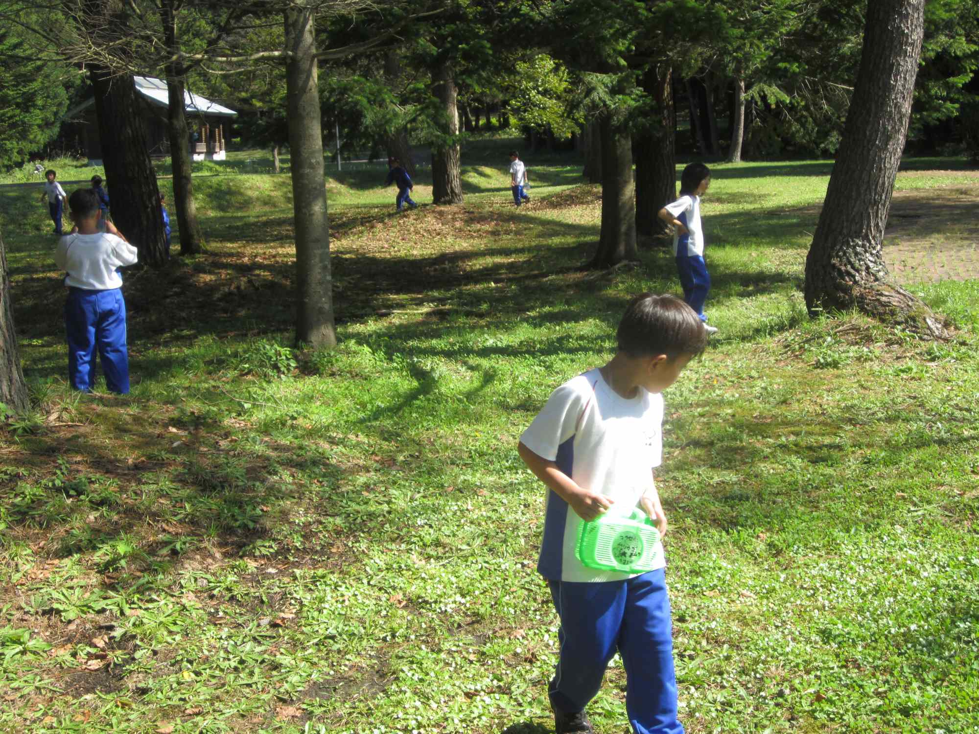 1年生が北欧の杜探検に出かけてきました。7月にも計画されていたのですが,クマの出没に伴い、北欧の杜が閉鎖されてしまい、そのときは残念ながら行くことができませんでした。その時の思いもあり,今回は本当に楽しみにしていて、朝から虫かごや軽い水槽、透明ビニルバッグなどを持参し、楽しむ気満々でした。天気もよく、遊具で遊び、虫を探し、ザリガニをとり、思い切り北欧の杜公園のよさを味わってきました。帰ってきた子どもたちはみんないい表情でした。北欧の杜があることは子どもたちにとって幸せだなあと改めて思いました。