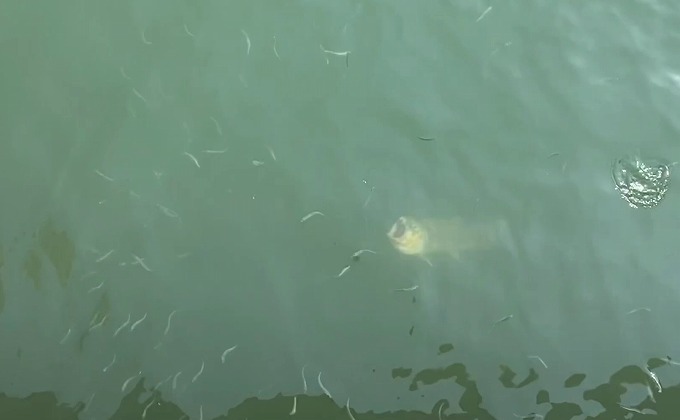 このアユ子群を狙ってアメマスが襲い掛っています。
