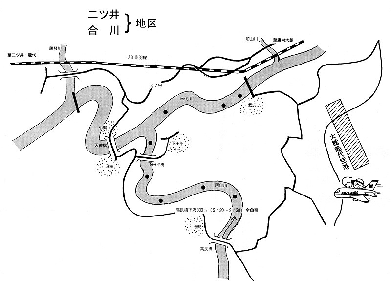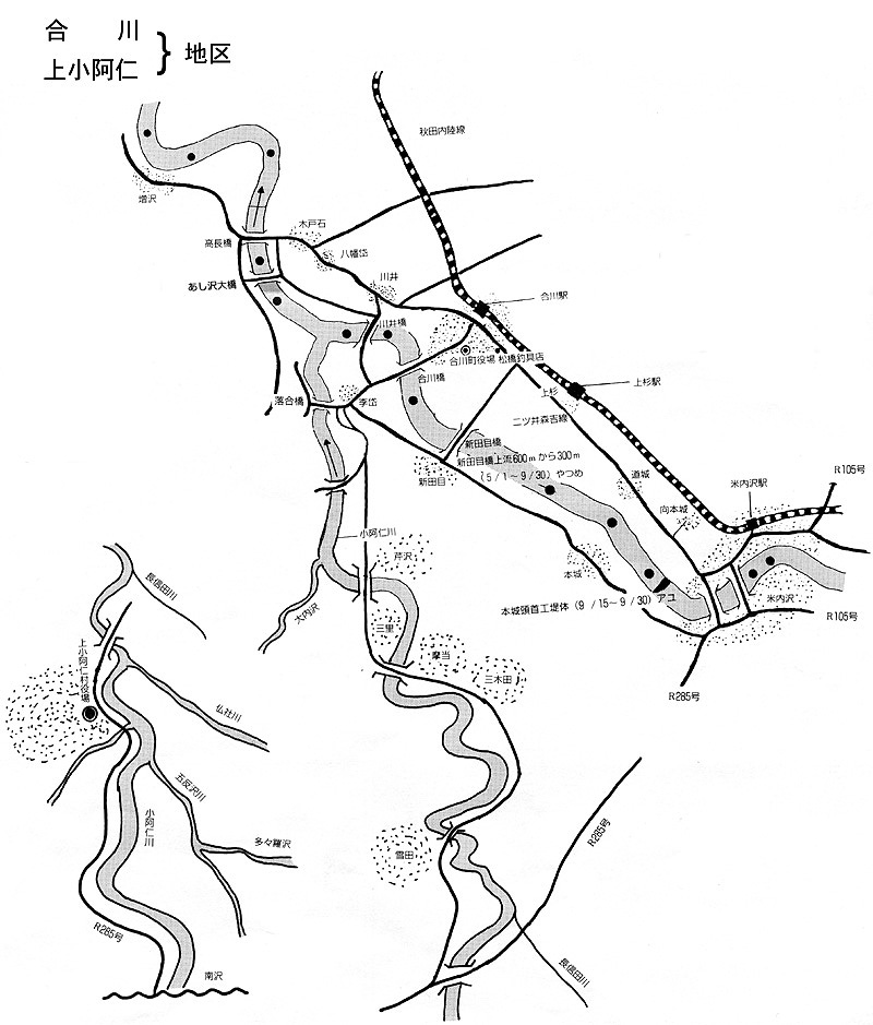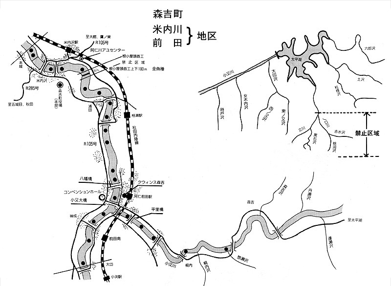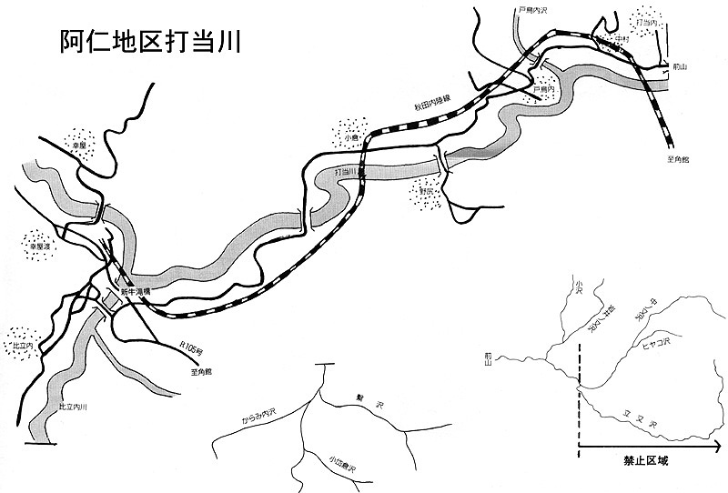 最上流打当地区~米代川二ツ井地区の一部までが阿仁川漁業協同組合のエリアです。