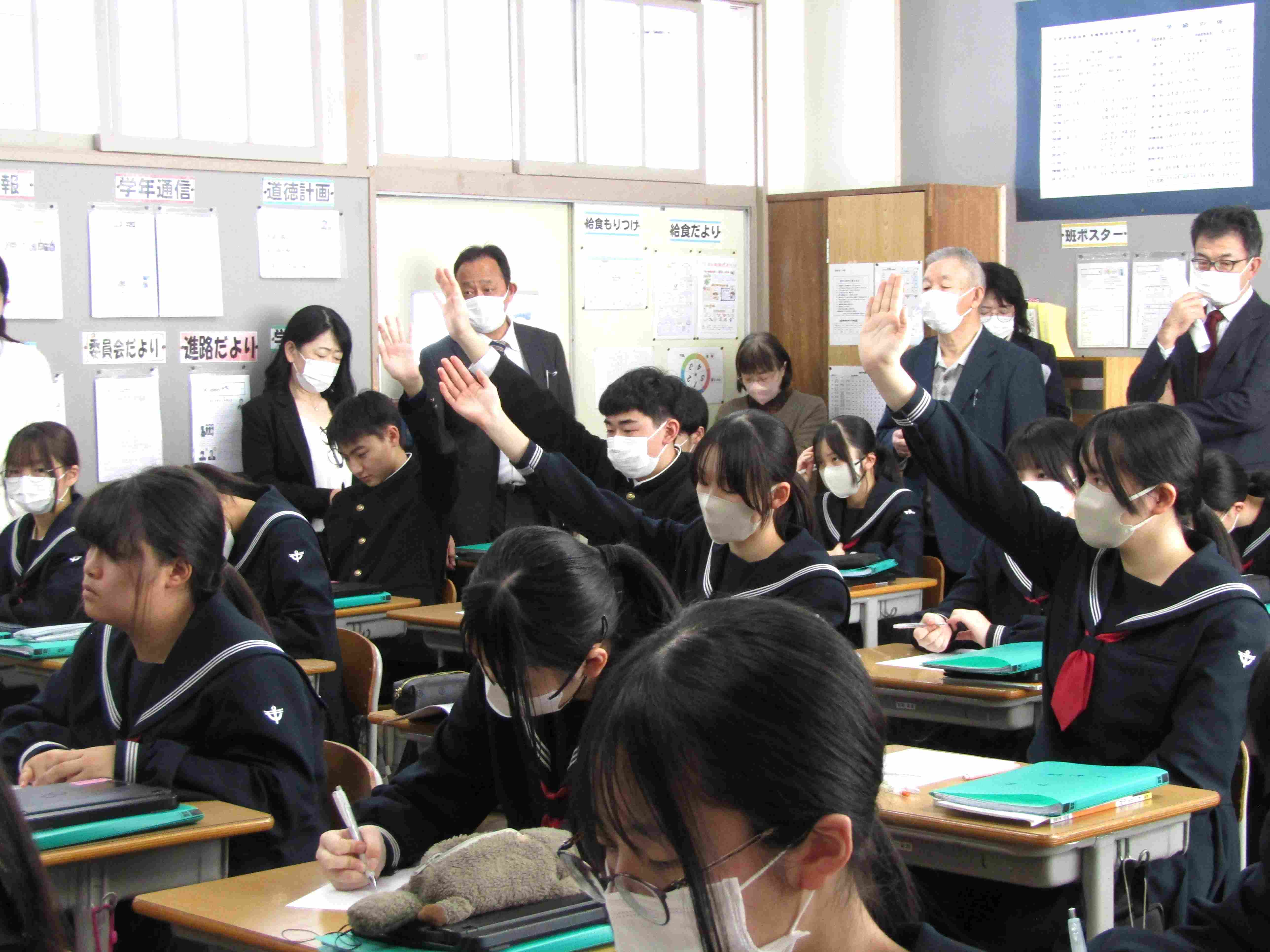 今年度最後となる学校運営協議会が行われました。委員の皆様に5校時の授業を参観していただいた後、学校運営についてご審議いただきました。今年度は、全校ボランティア活動を実施したことが地域の中で学ぶ貴重な機会となった、また学校の活動に地域の方を招いたこともよい実践であったということが話題になりました。また、今後の取組について具体案も多く出され有意義な話合いが行われました。特に「徳育」、「ふるさと教育・キャリア教育」について高い評価をいただきました。いただいたご意見は、来年度の学校運営に活かしていきたいと思います。これからも地域の方と連携しながらよりよい学校づくりに努めて参りたいと思います。