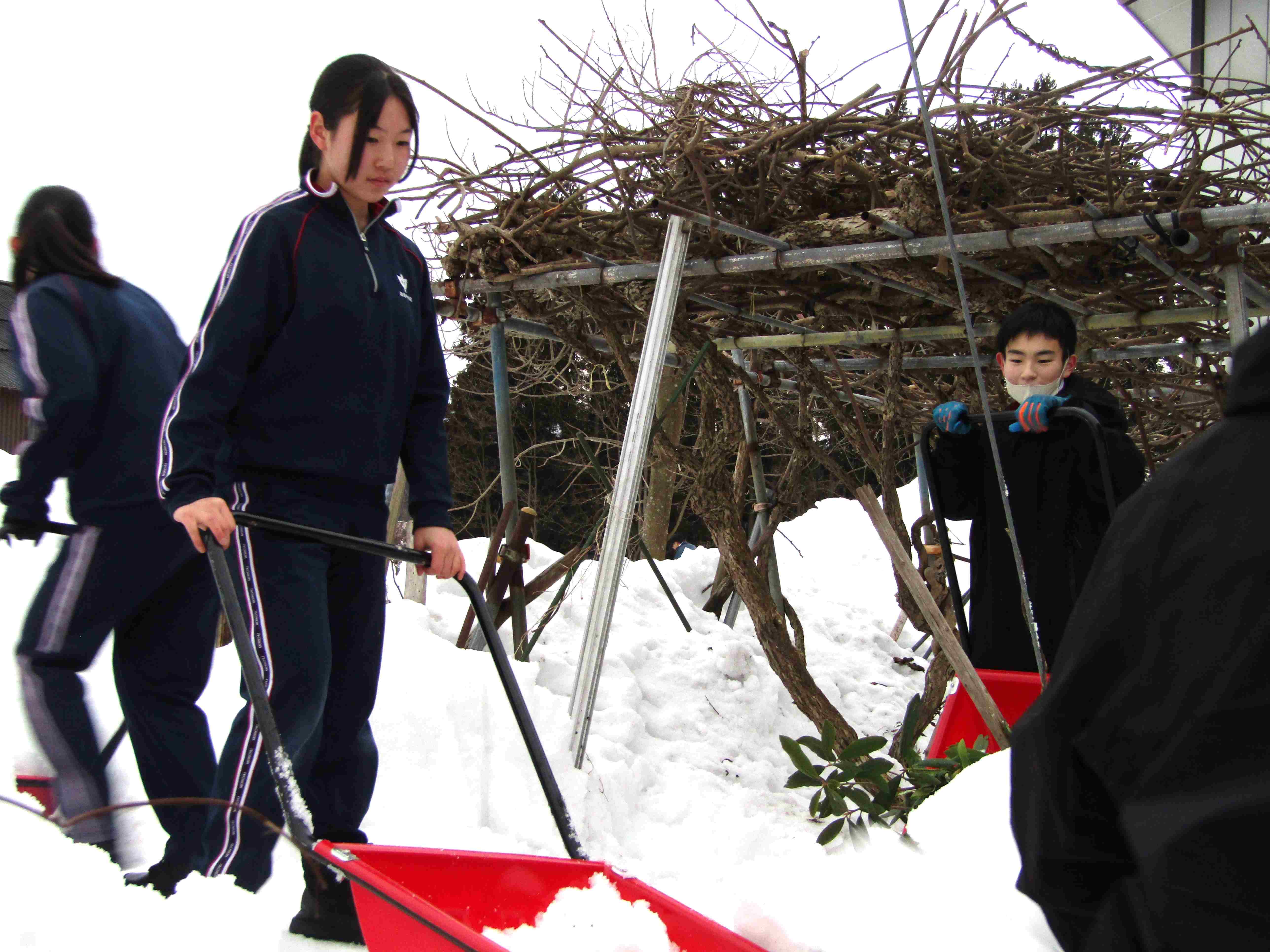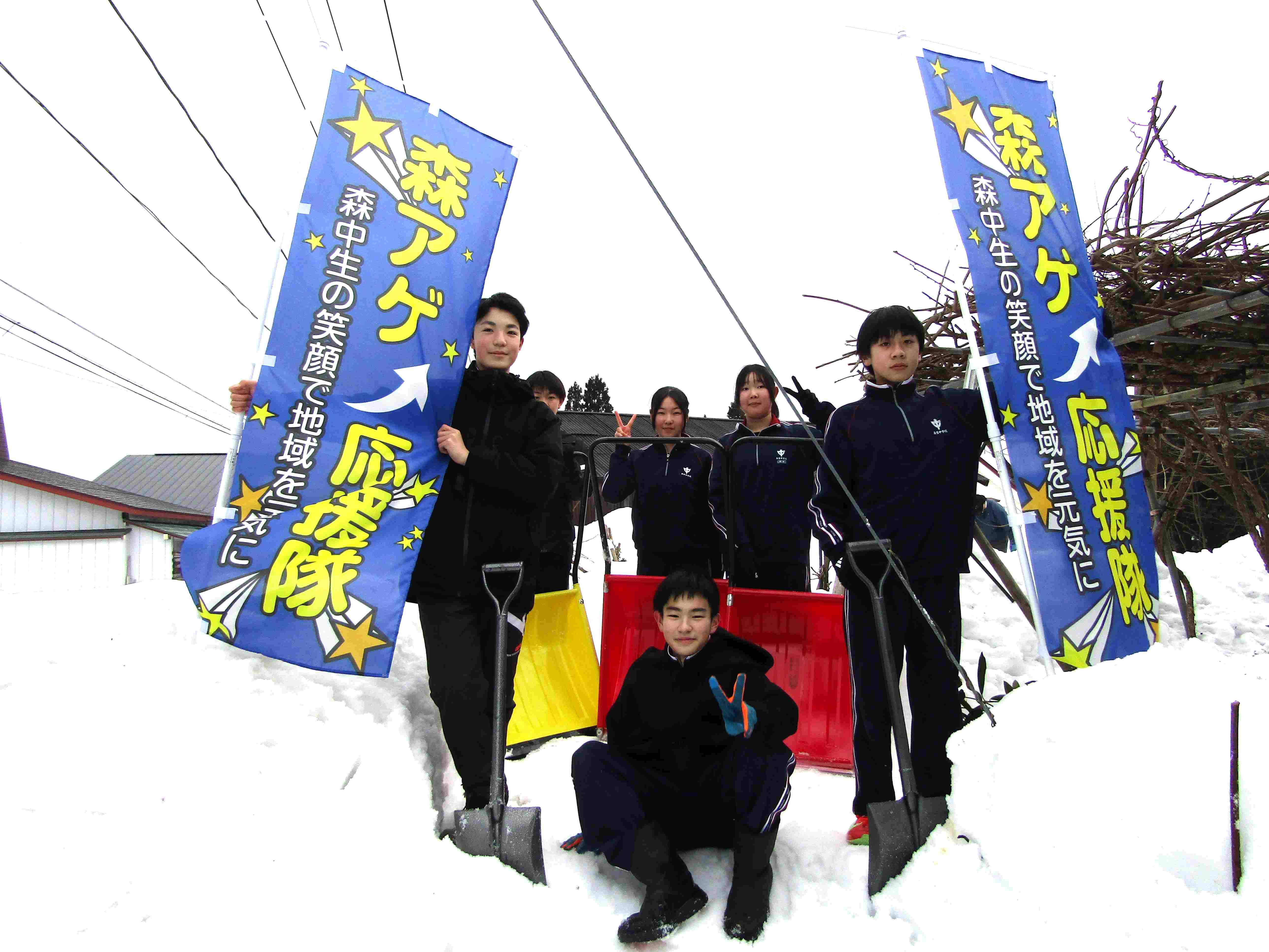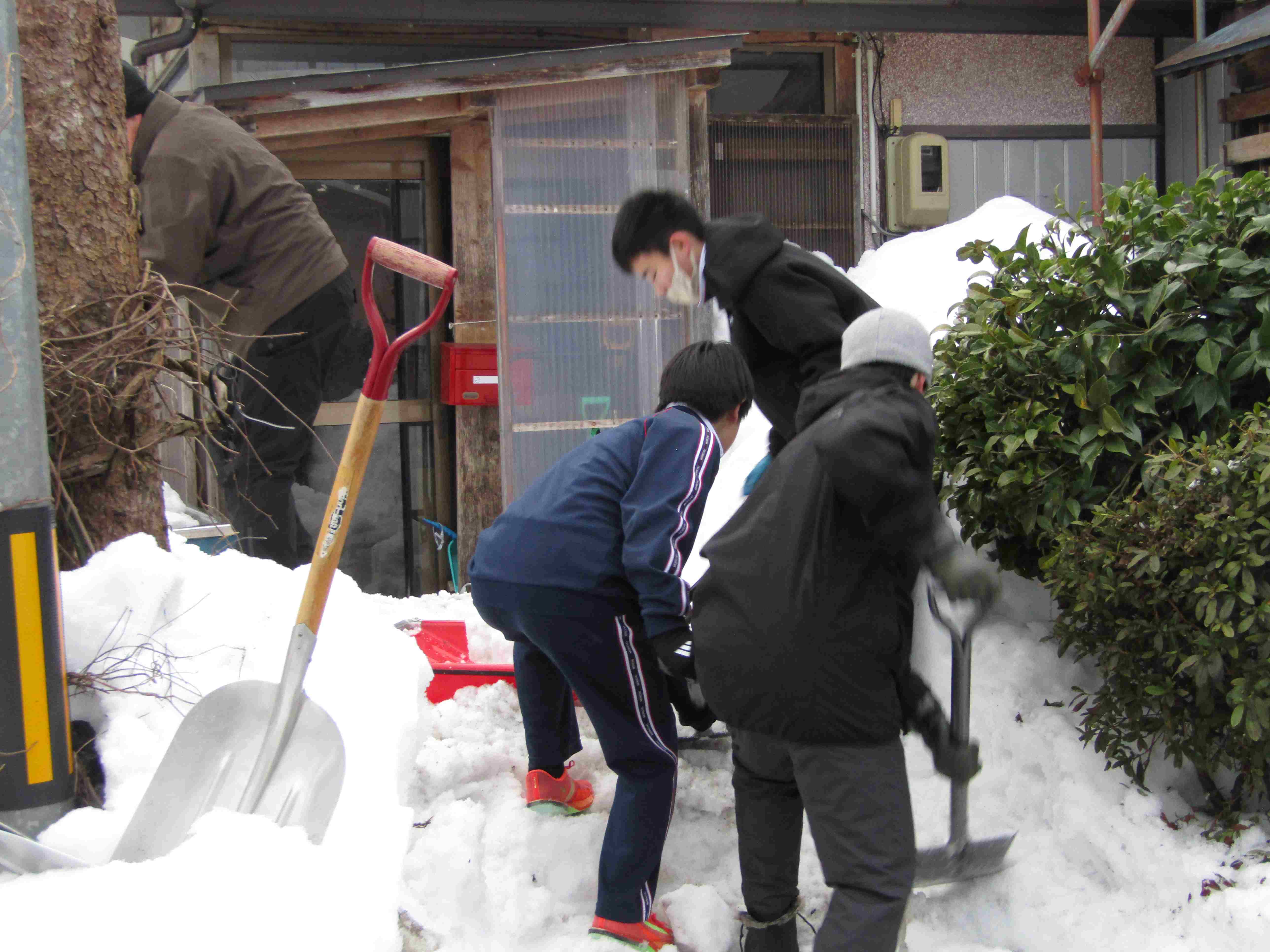 今回は、陸上部を中心に除雪ボランティアを行いました。あっという間に玄関前の雪寄せが終わり、綺麗になりました。生徒たちから自然に「また、来ま~す!」の声が出て、嬉しい気持ちになりました。これからも、地域のためにできることを頑張りたいと思います。