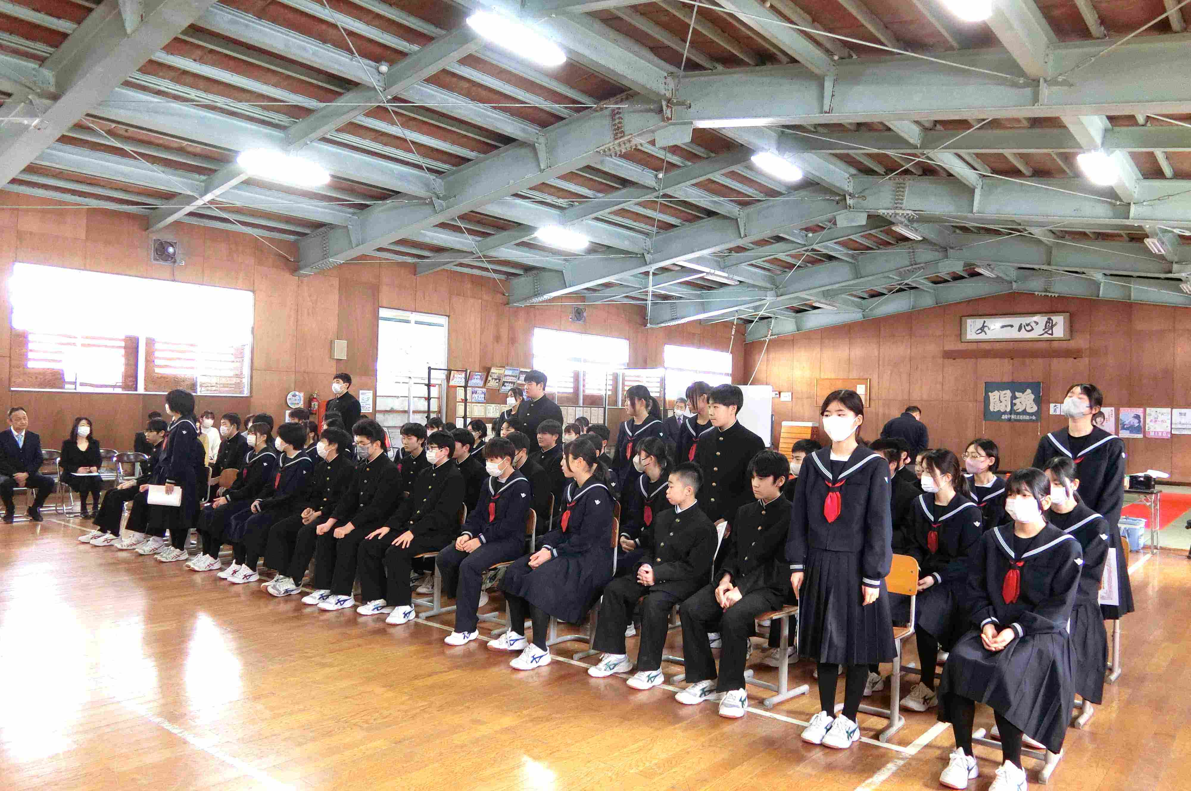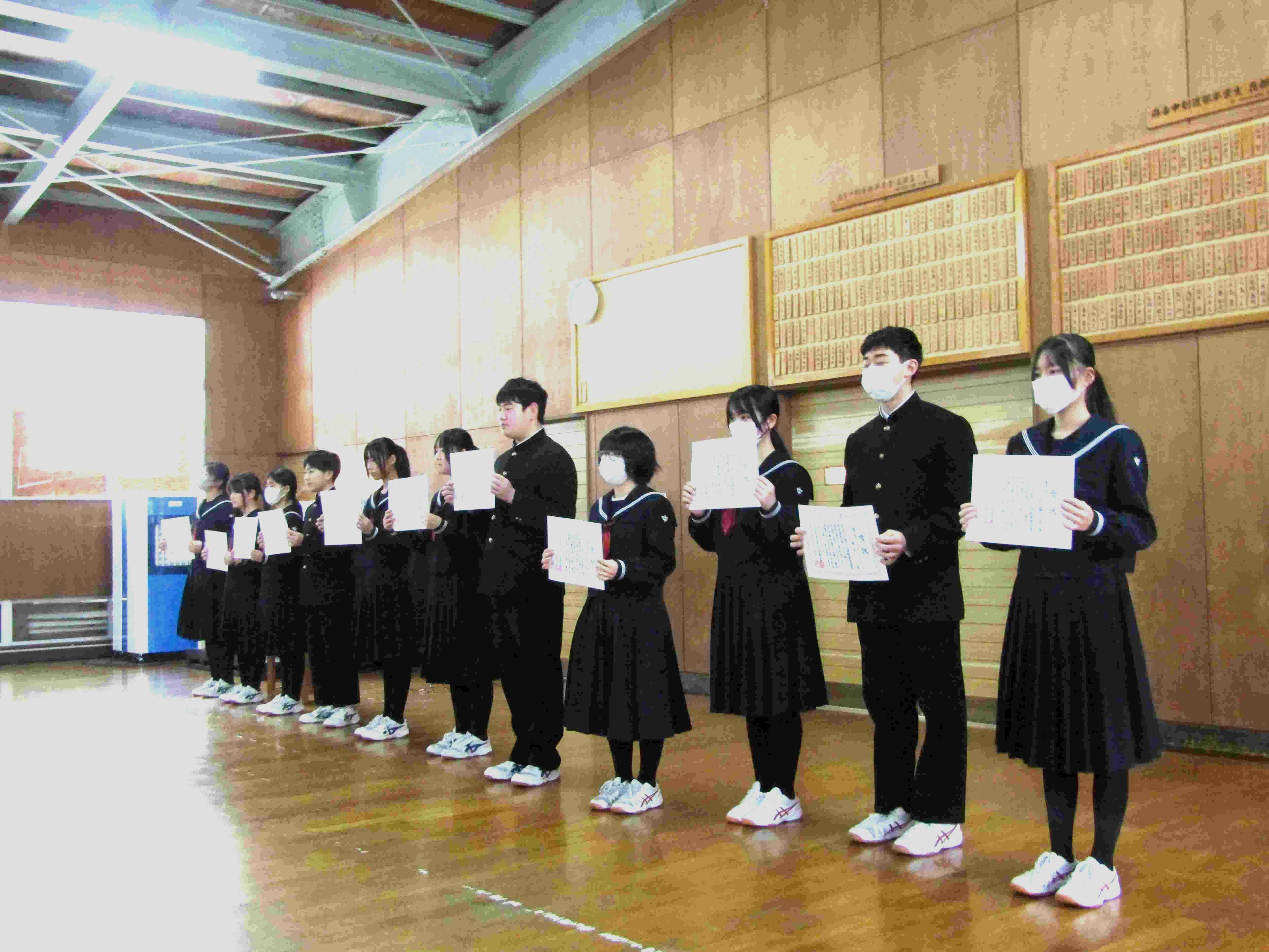 各種委員長から、一年間を振り返り来年度につなげる意識で取り組む具体的な施策について話されました。また、北秋田地区少年防犯弁論大会と秋田県児童生徒美術展での受賞の紹介も行われました。執行部からは、「今年度残り少なくなりましたが、気を引き締めて頑張りましょう。」という呼びかけがありました。