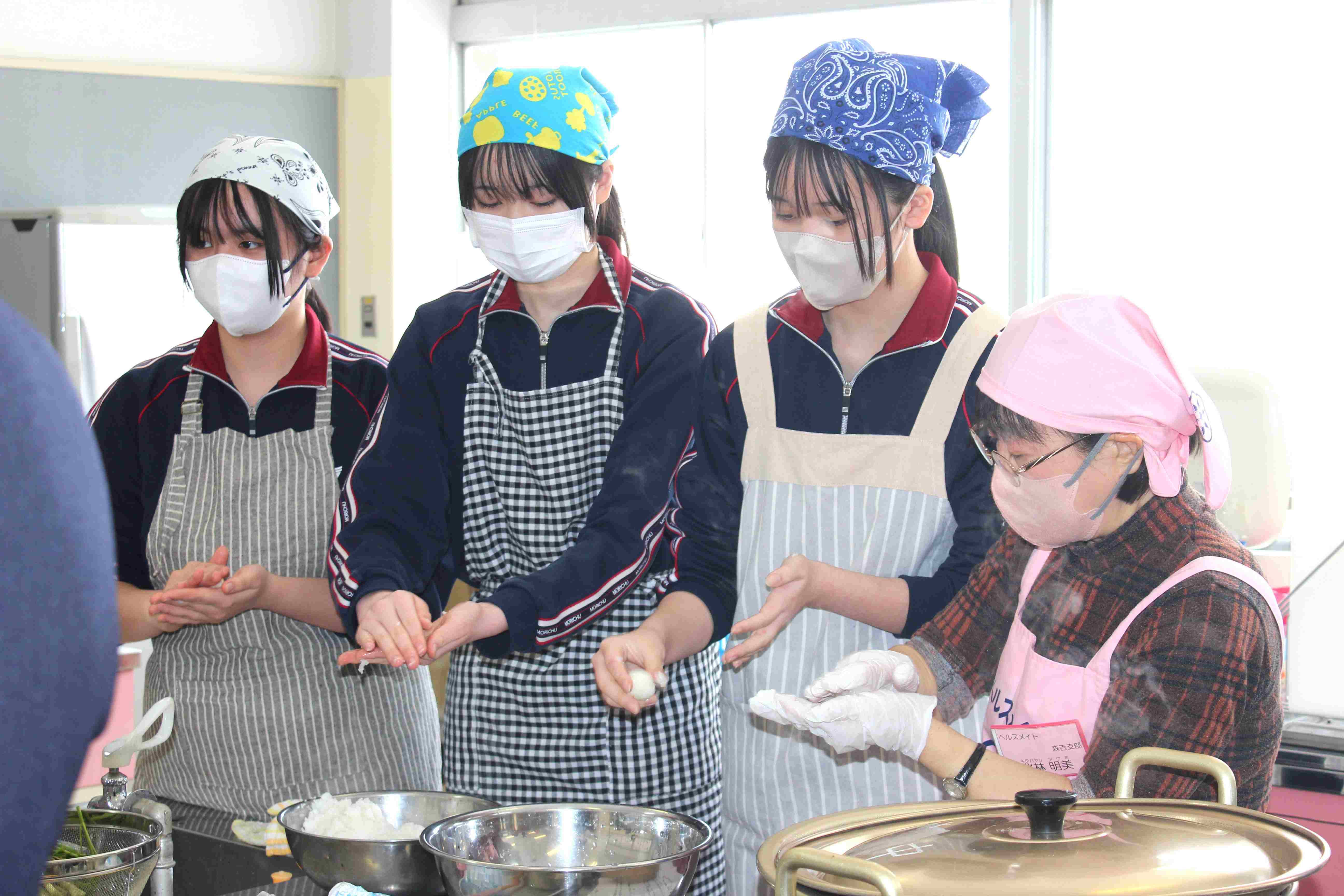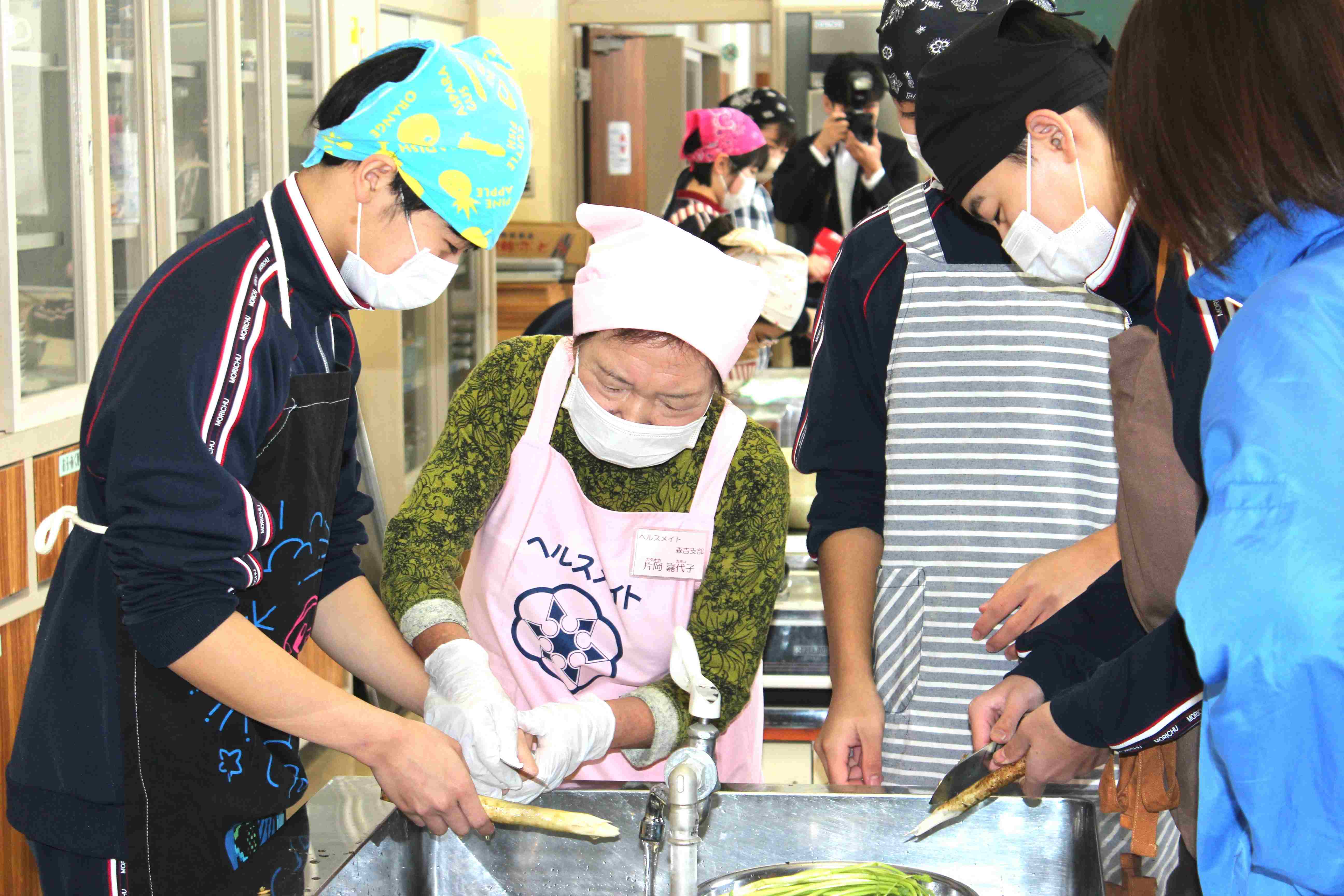 北秋田市食生活改善推進協議会と北秋田市医療健康課の方においでいただき、3年生がだまこ鍋ときゅうりなますの調理実習を行いました。お団子のようなもちもちしただまこに汁がたっぷりしみ込んでいて大変美味でした。米をすりこぎ棒で半つきにする様子は、まるで太鼓をたたいているようでした。将来、どこで暮らしていても、懐かしく思い出す郷土の味でした。