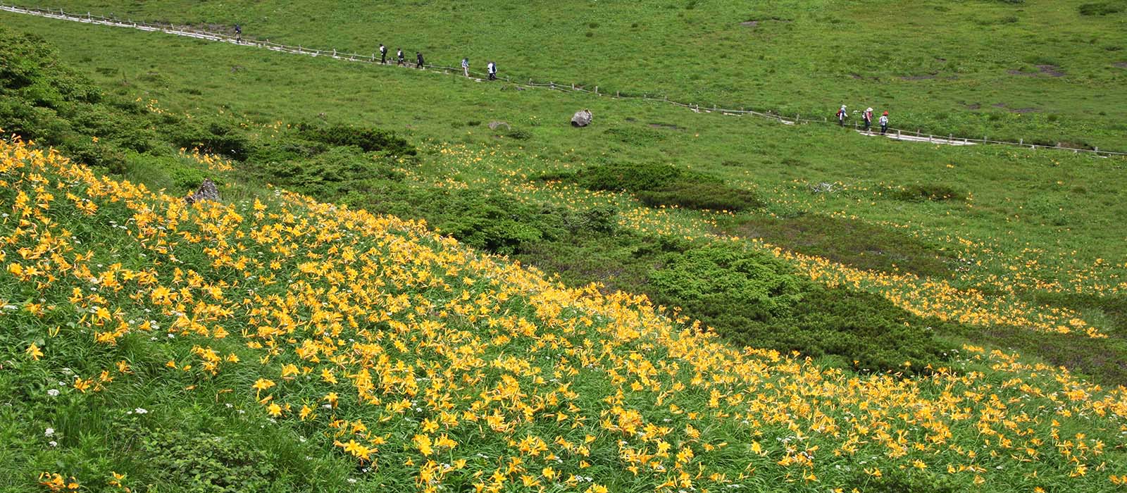 馬場ノ小路や五百羅漢から男岳に続く南西斜面は高山植物の宝庫だ 6月下旬 |