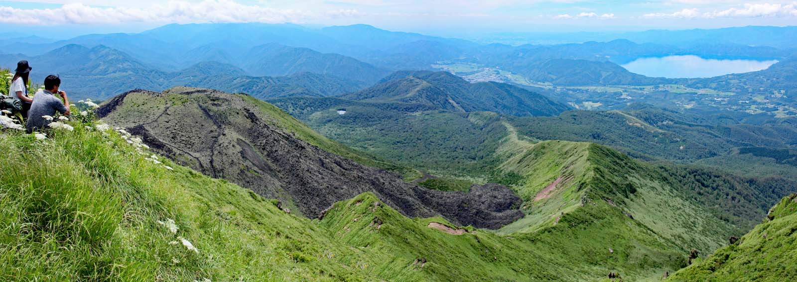 男岳山頂から女岳溶岩流と田沢湖を望む 7月中旬 |