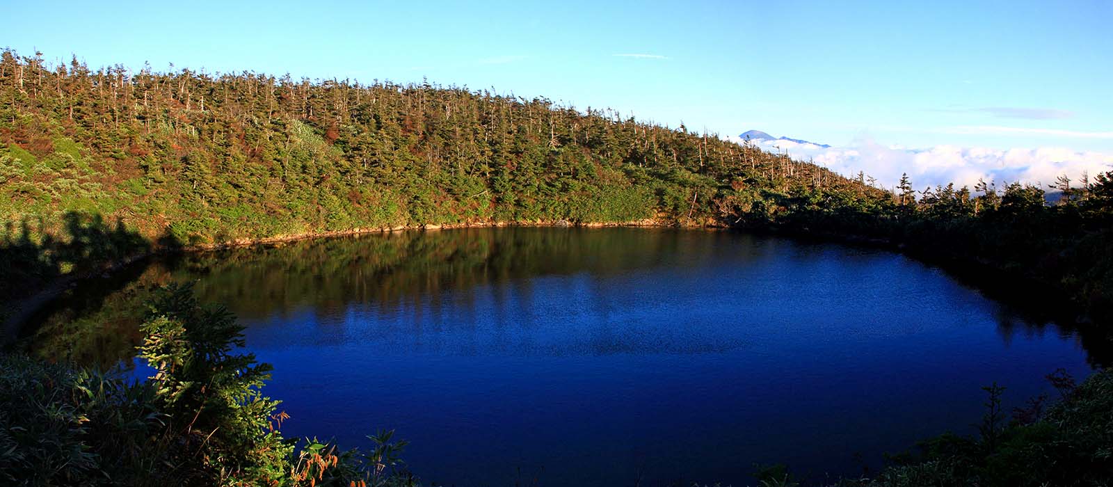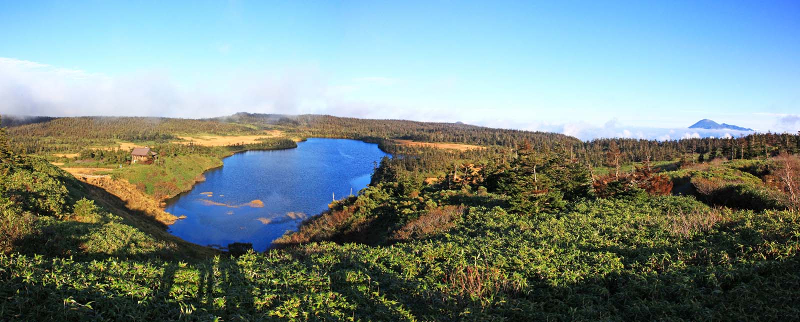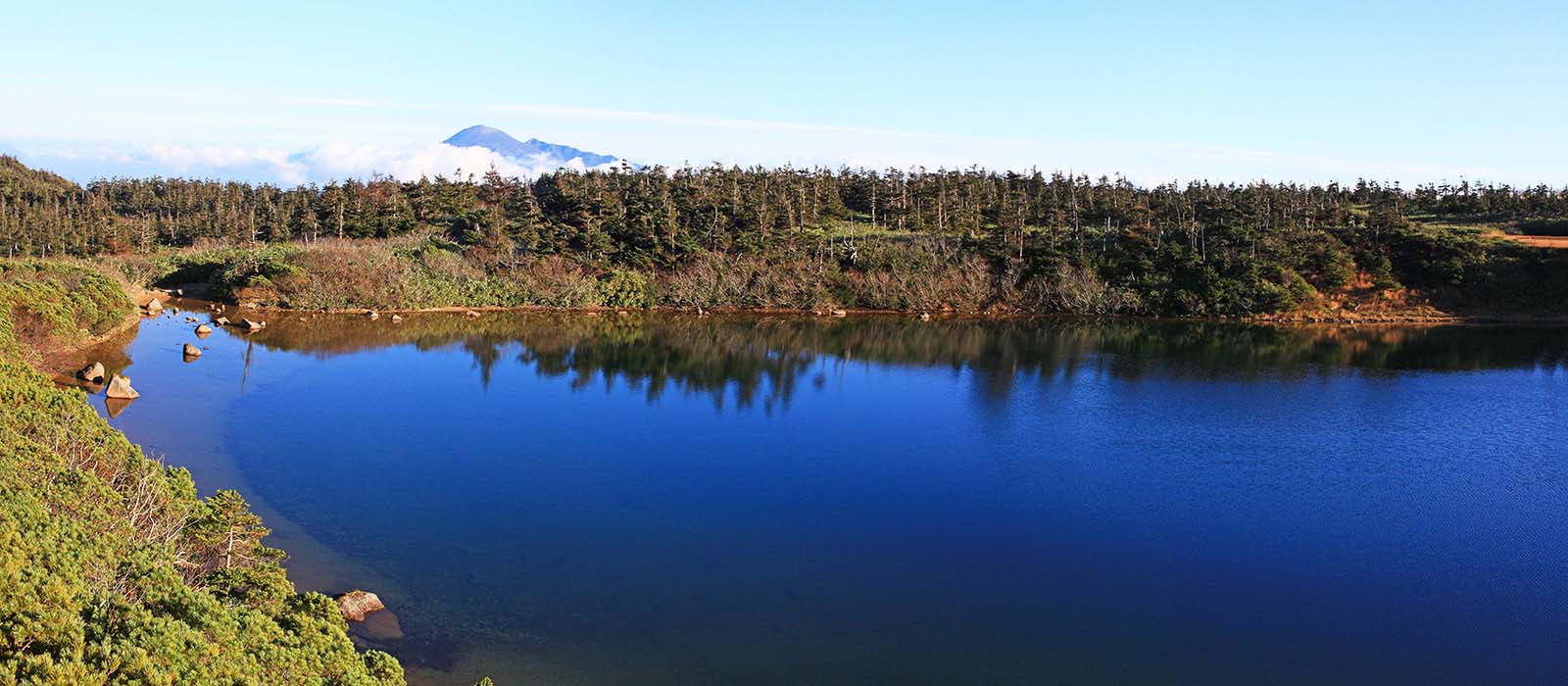 八幡平山頂直下、標高1541mの見返峠駐車場の一角に「八幡平パークサービスセンター」がある。岩手・秋田の県境で、八幡平アスピーテラインと八幡平樹海ラインが交差するこの場所は、八幡平や裏岩手、または遠くは県境を縦走しての秋田駒ヶ岳への登山基地でもある。 一般ルートの八幡平自然探勝路(5キロ約2時間)は、遊歩道に沿って鏡沼〜メガネ沼〜八幡平山頂〜ガマ沼〜八幡沼〜源太森から八幡沼対岸を周回するコースだ。早池峰山、岩手山、烏帽子、秋田駒、鳥海、森吉山の峰々が眺望できる雲上の木道を巡りながら、針葉樹林帯や高層湿原に咲くお花畑を堪能されたい。 |