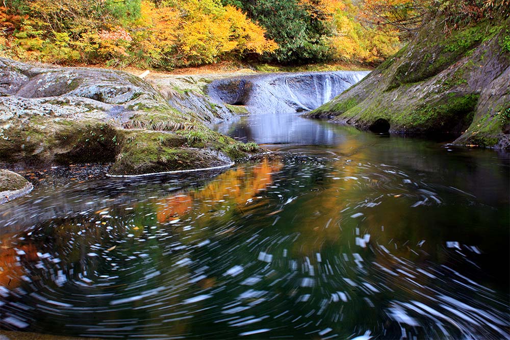 大小100を数える瀑布とおう穴、深渕からなる原生郷で、