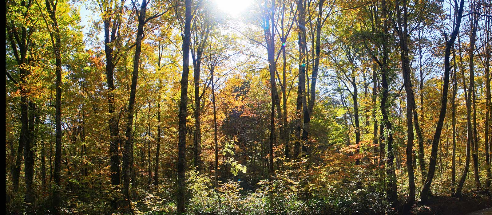 林内のツタやカエデ類が色ずくと