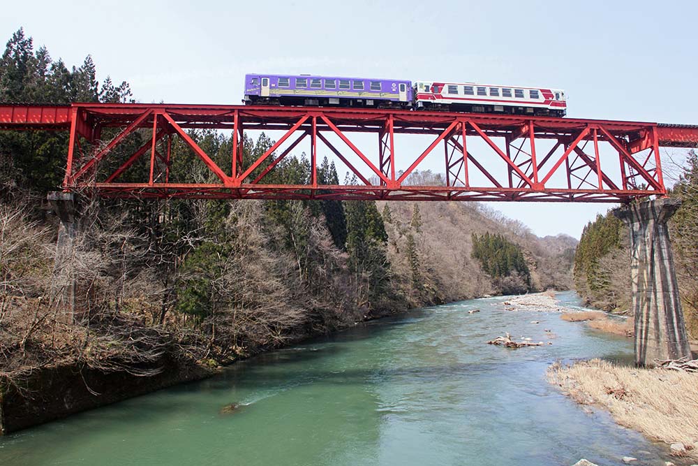 ←奥阿仁駅<春紅葉のスマイルレール:打当川第2橋梁>比立内駅→