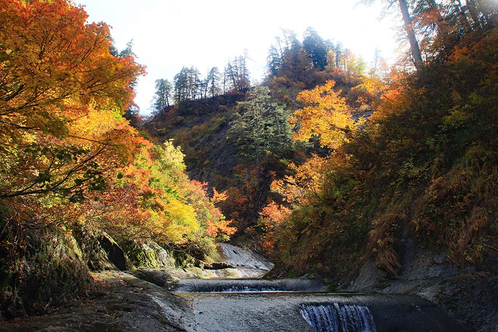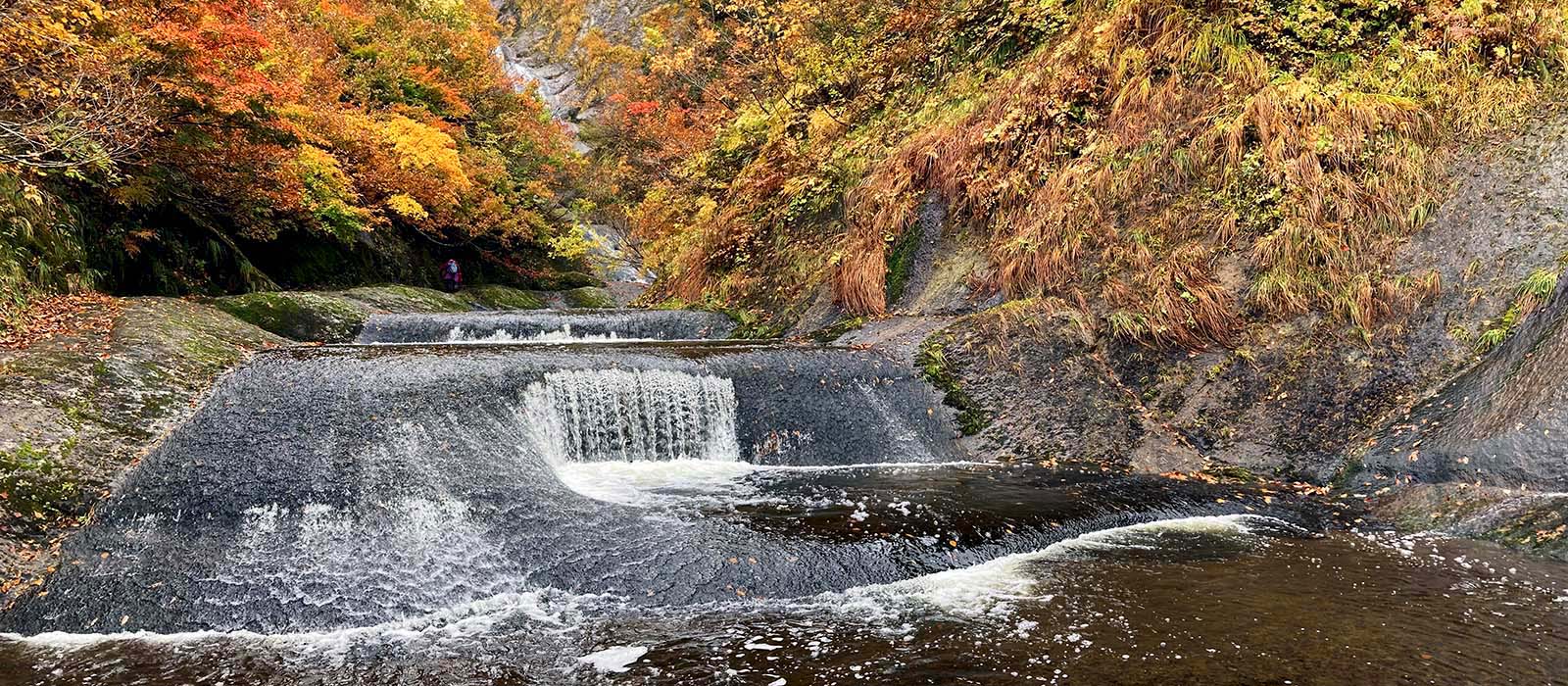 さらに上流部は12段ノ滝、中ノ滝、男滝や無数のおう穴が連続し、