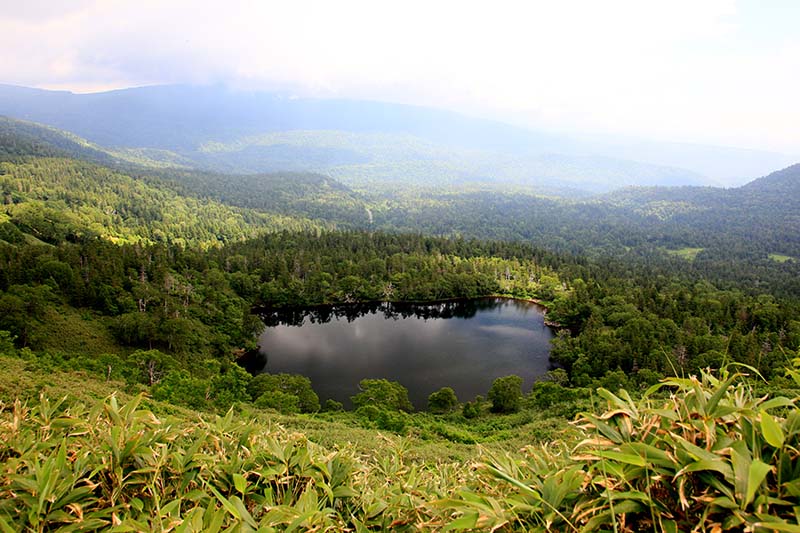 国立公園八幡平地域は、第4期に噴出した約40もの火山により形成されている。代表的な山岳としては、この公園の最高峰岩手山(2038m)、秋田駒ヶ岳(1637m)、八幡平(1613m)、茶臼岳(1578m)、畚岳(1578m)、大深岳(1541m)、焼山(1366m)などがあり、八幡沼、ガマ沼、御苗代湖、御釜湖などの火口湖も多く存在している。 |